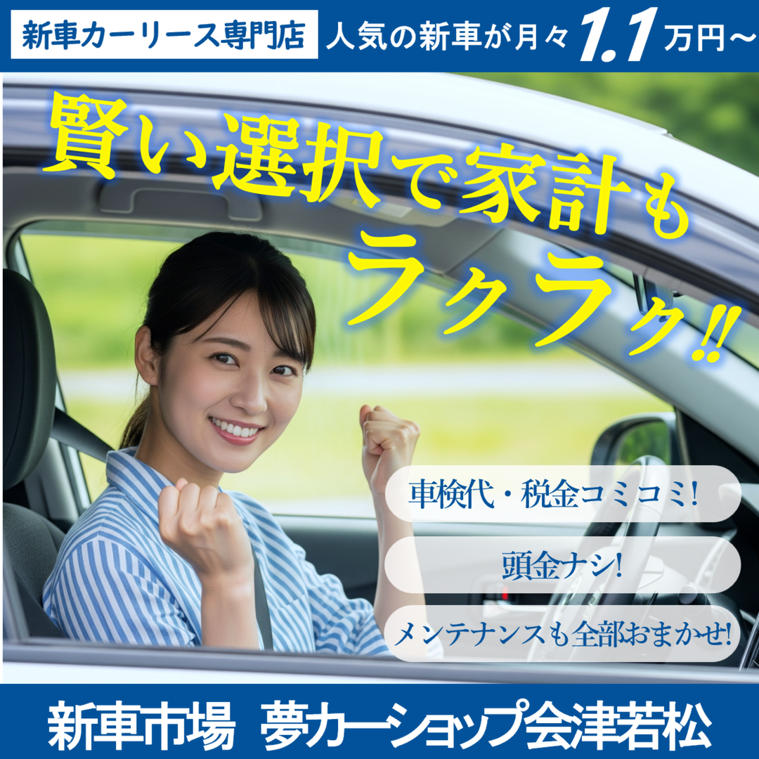 他社も見ましたが、車種ごとに支払い金額が異なりイメージが悪かったですが、一定の支払金額で新車が選べるのは嬉しいです。